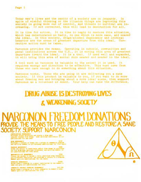 Narconon works. Those who are using it are delivering you a sane society. If this product is valuable to you, if you want to do more about freeing men and bringing about a more ideal scene, then support Narconon as a volunteer or donor. Your help can make the difference.