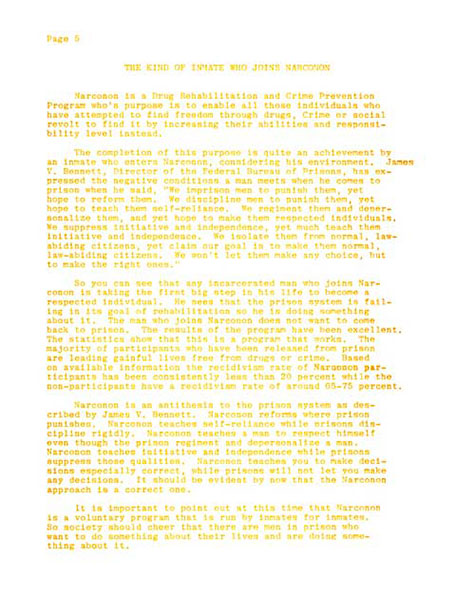 It is important to point out at this time that Narconon is a voluntary program that is run by inmates for inmates. So society should cheer that there are men in prison who want to do something about their lives and are doing something about it.
